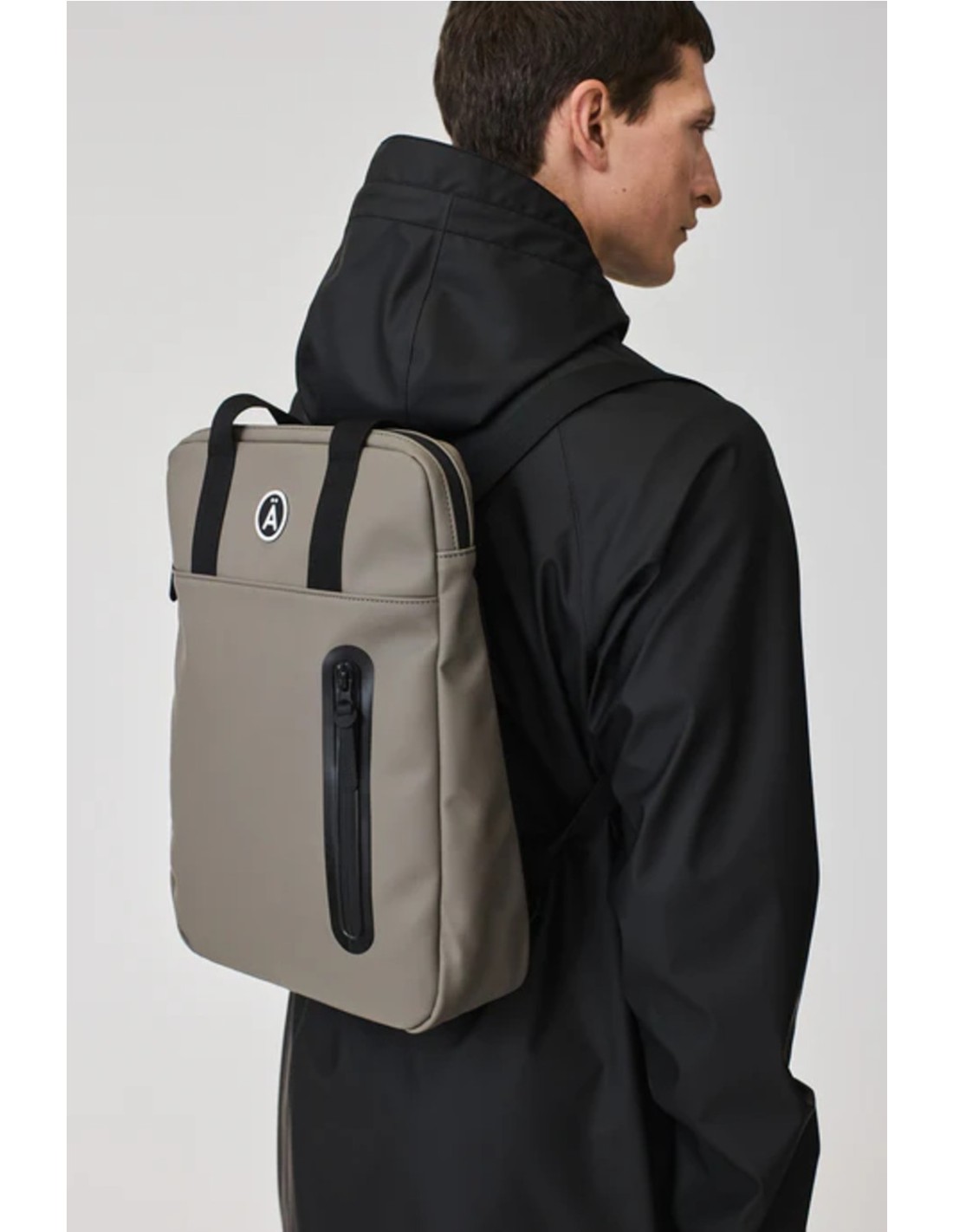 Bolsillo frontal con acceso a través de cremallera con cinta impermeable.