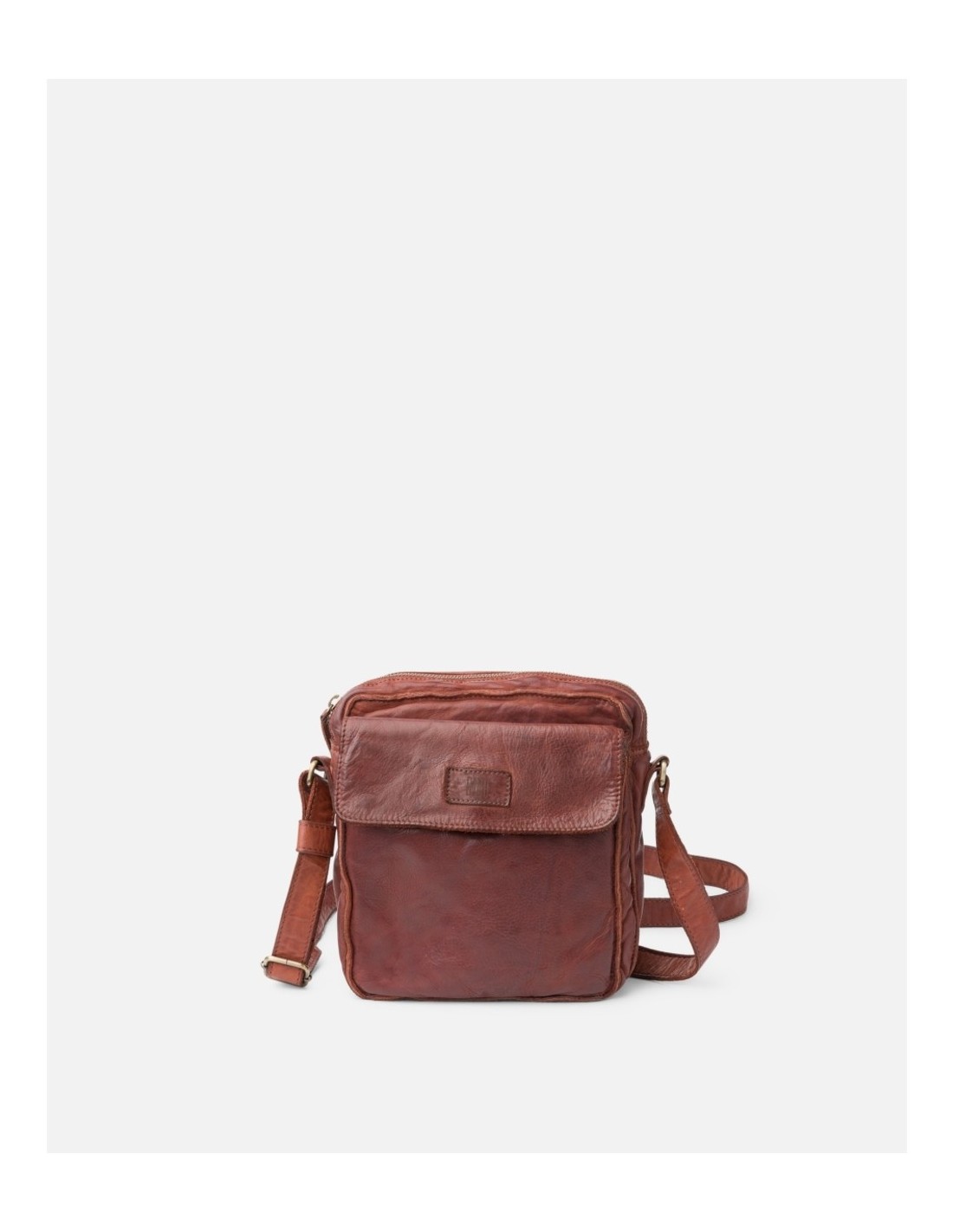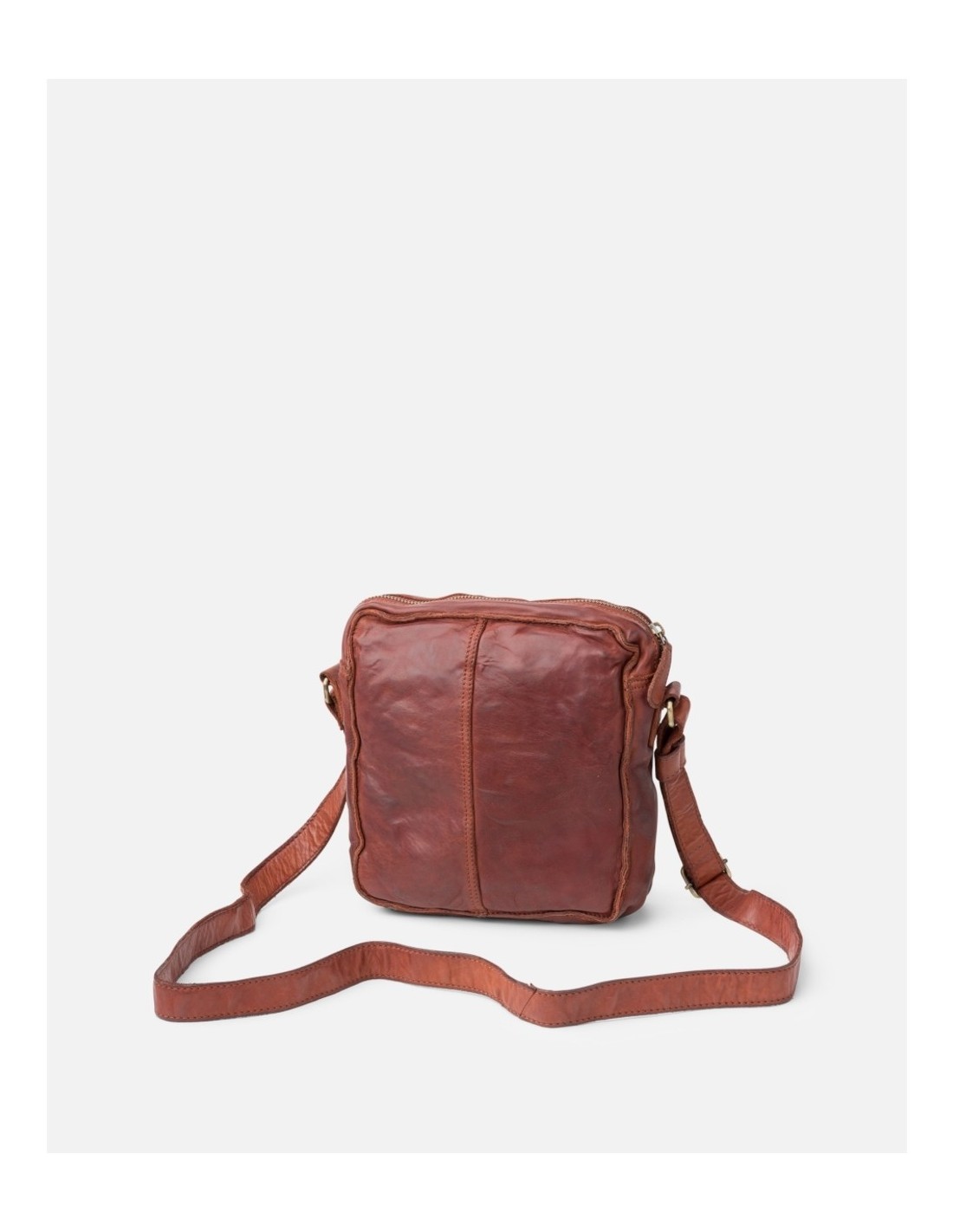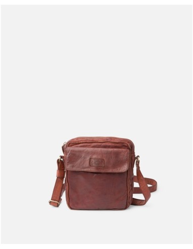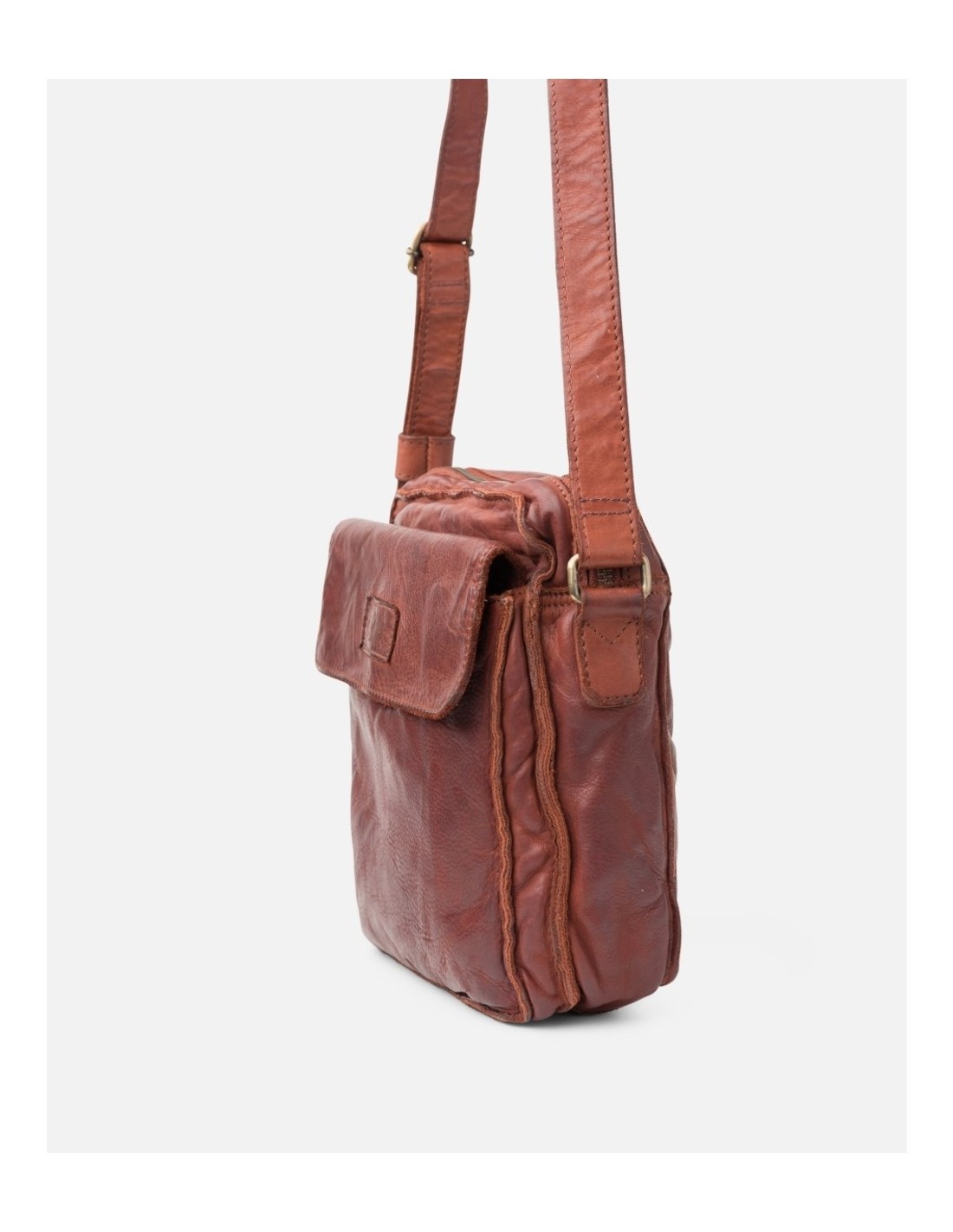 Bolso bandolera de piel vacuna lavada. Cierre con cremallera. Bandolera regulable. Multiples bolsillos externos e internos. Forro de algodón