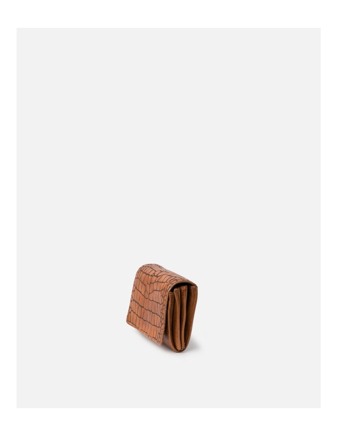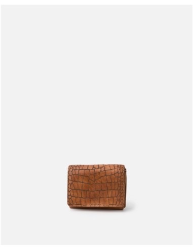 Billetero pequeño de piel vacuna lavada. Grabado en laser con efecto piel de cocodrilo. Cierre con solapa y boton. Compartimientos para tarjetas y monedas. Línea: Wallets Referencia: EVS3L Colección: Material: Piel bovina Dimensiones: 9 x 11 x 0 cm