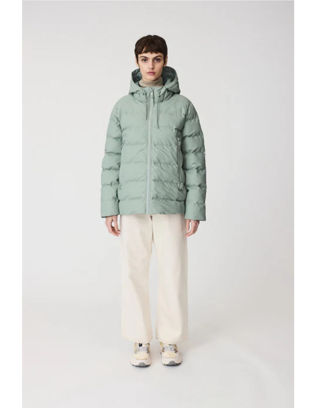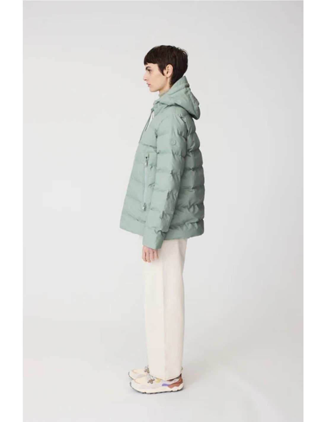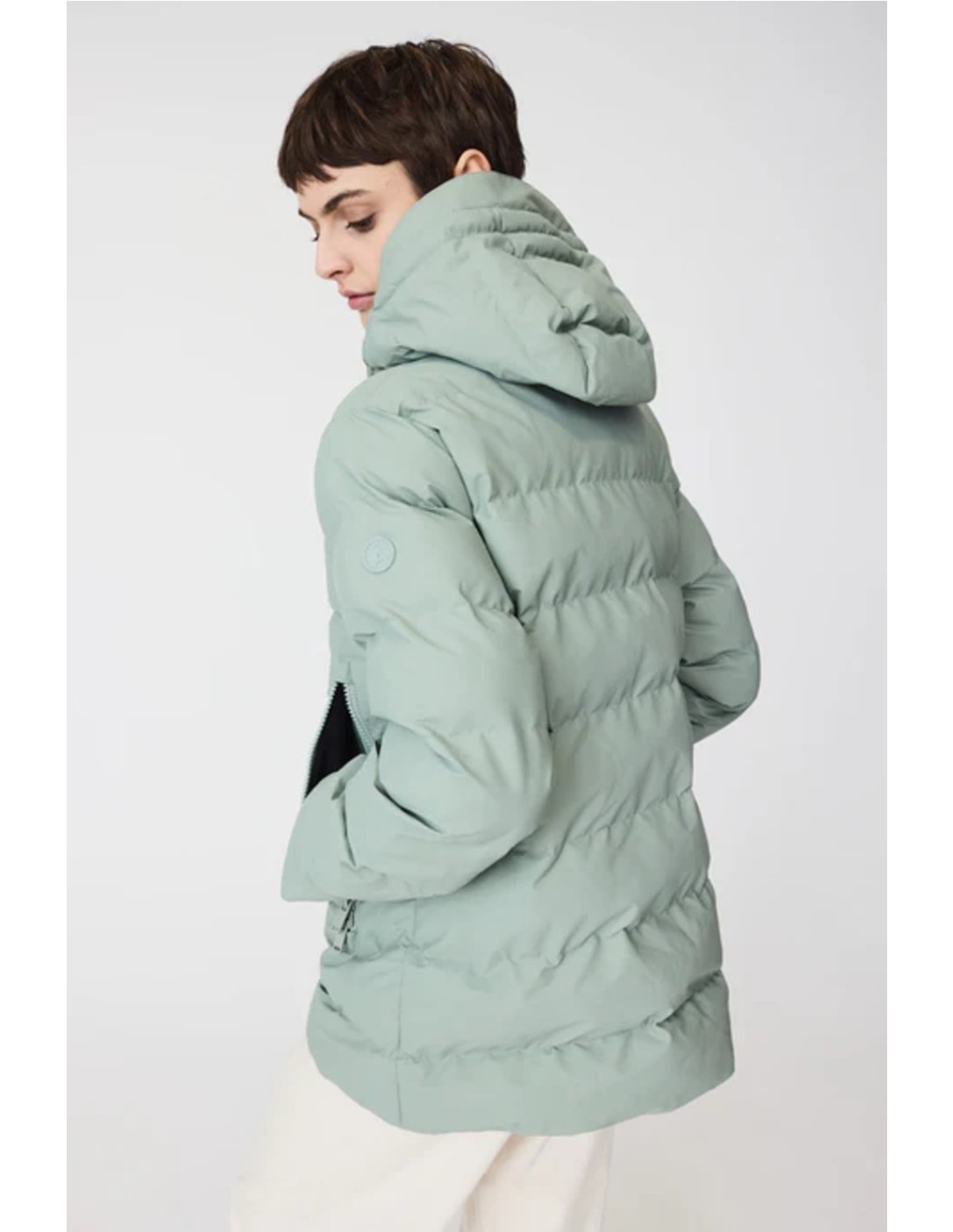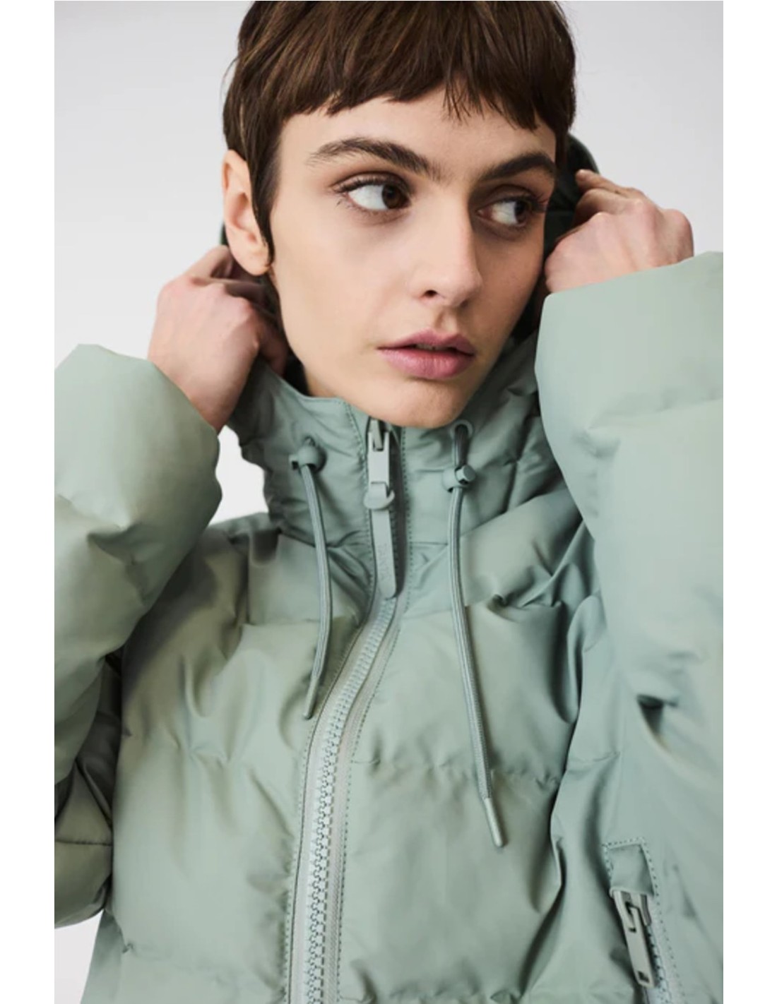 Capucha con cordón y cuello alto.