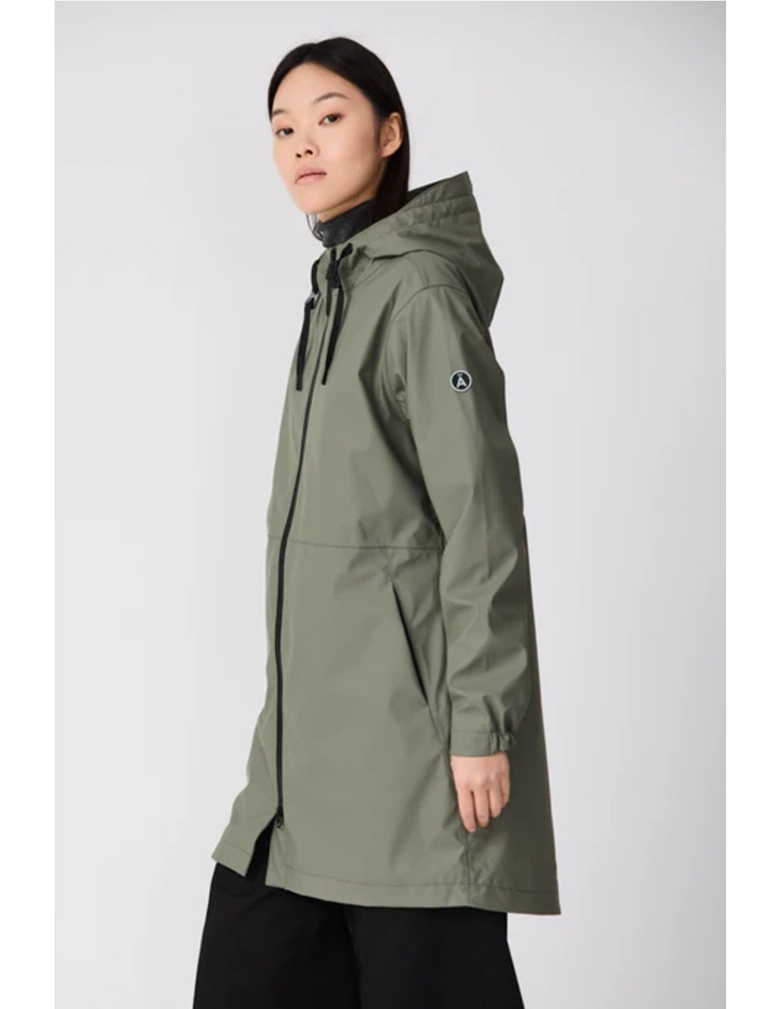 - Capucha con cordón con gorra incorporada y cuello alto