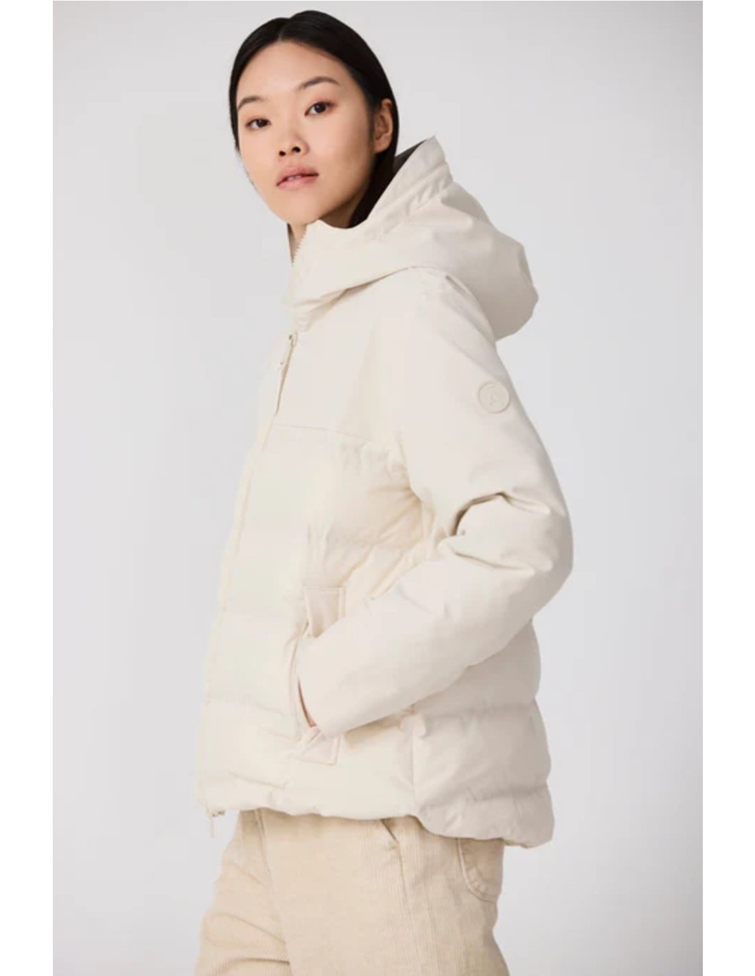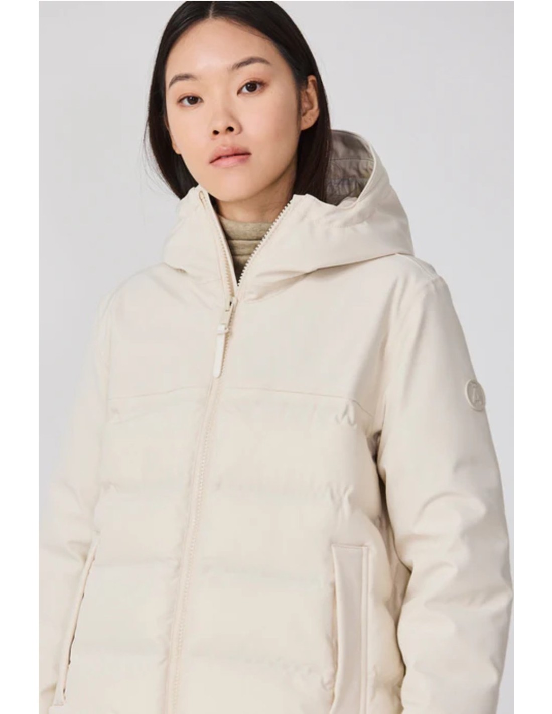 Capucha ajustable con cordón, visera incorporada y cuello extra alto.