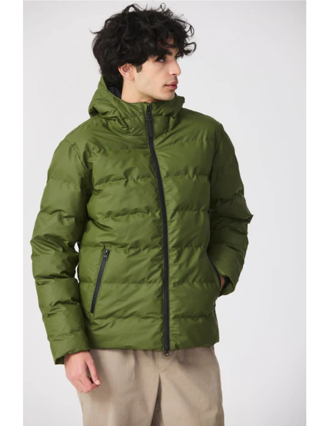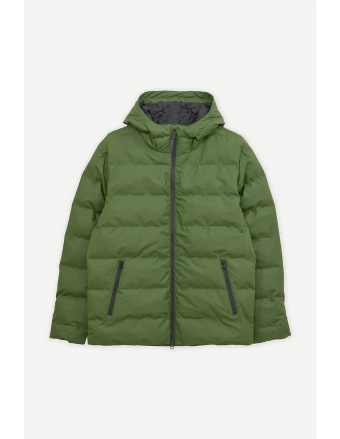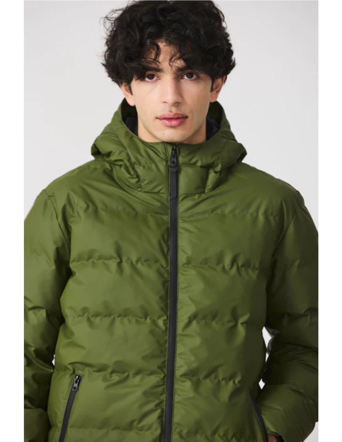 Capa exterior: 100 % poliéster; revestimiento 100% poliuretano. Capa aislante: Acolchado de polietileno expandible Forro interior: 100% nailon. 100% repelente al agua. Prenda completa cosida con hilos impermeables. Cremallera sellada impermeable de doble cursor en la parte delantera. Bolsillos con cremalleras impermeables. Interior de bolsillos de forro polar. Puños cortavientos en el interior de las mangas. Bolsillo en costura con cremallera en el interior. Capucha de cordón
