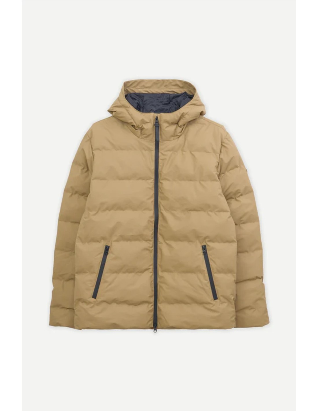 Capa exterior: 100 % poliéster; revestimiento 100% poliuretano. Capa aislante: Acolchado de polietileno expandible Forro interior: 100% nailon. 100% repelente al agua. Prenda completa cosida con hilos impermeables. Cremallera sellada impermeable de doble cursor en la parte delantera. Bolsillos con cremalleras impermeables. Interior de bolsillos de forro polar. Puños cortavientos en el interior de las mangas. Bolsillo en costura con cremallera en el interior. Capucha de cordón