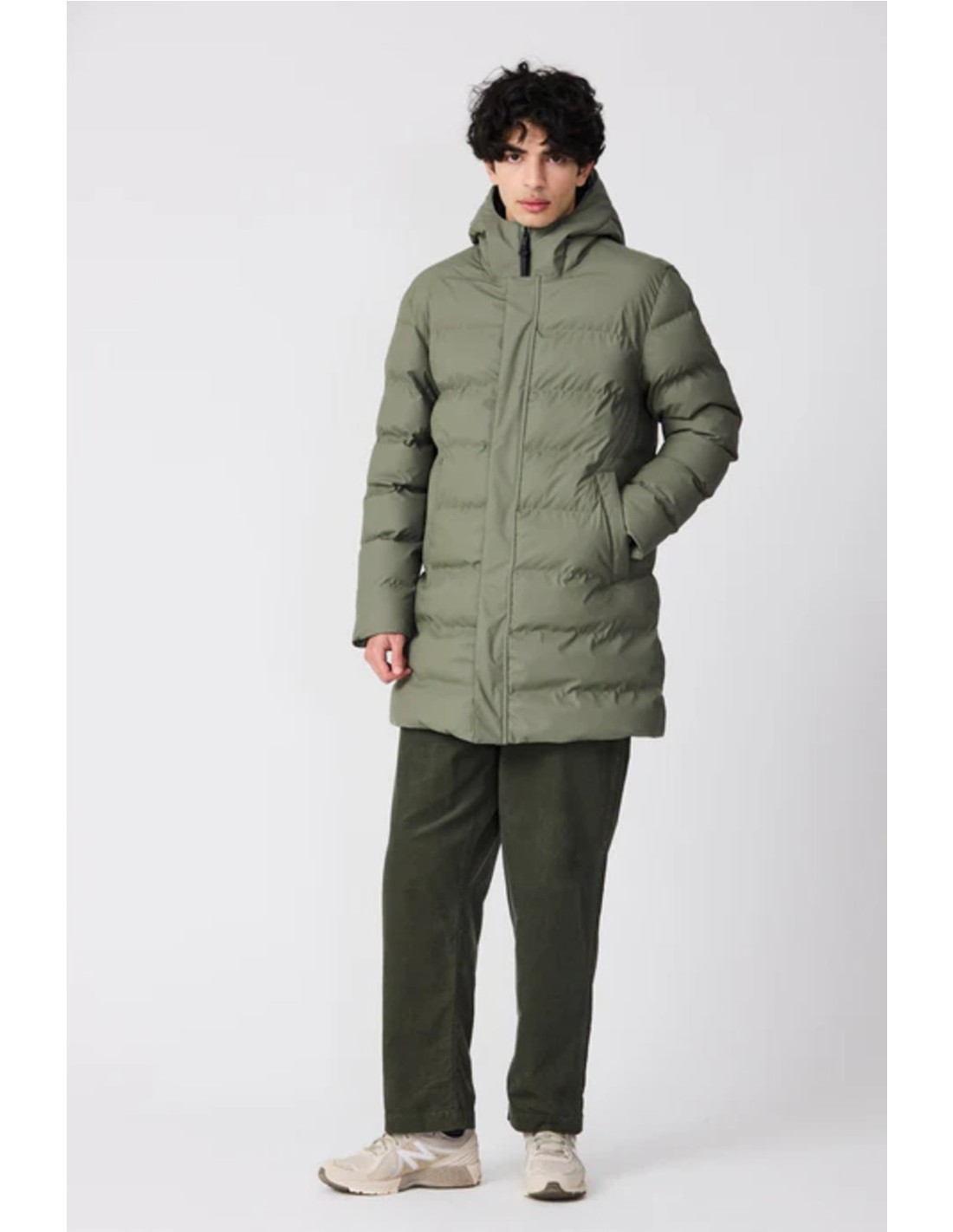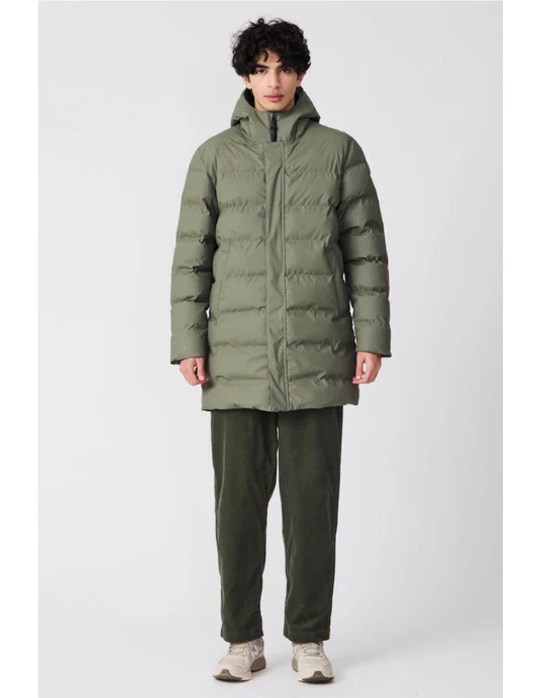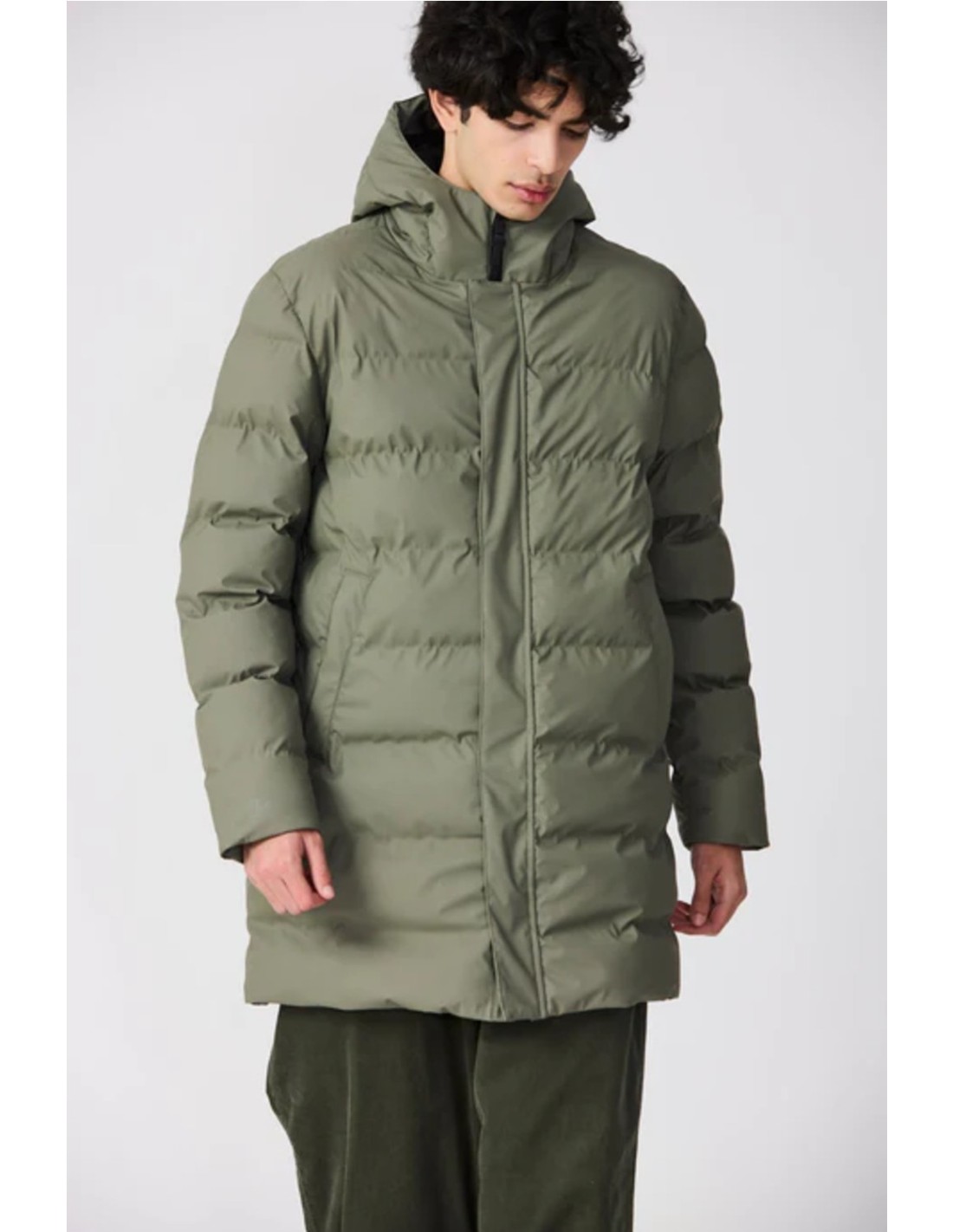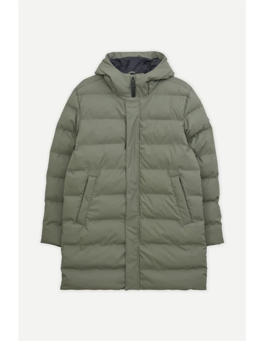 Cremallera impermeable de doble cursor y botones magnéticos ocultos en el frente.