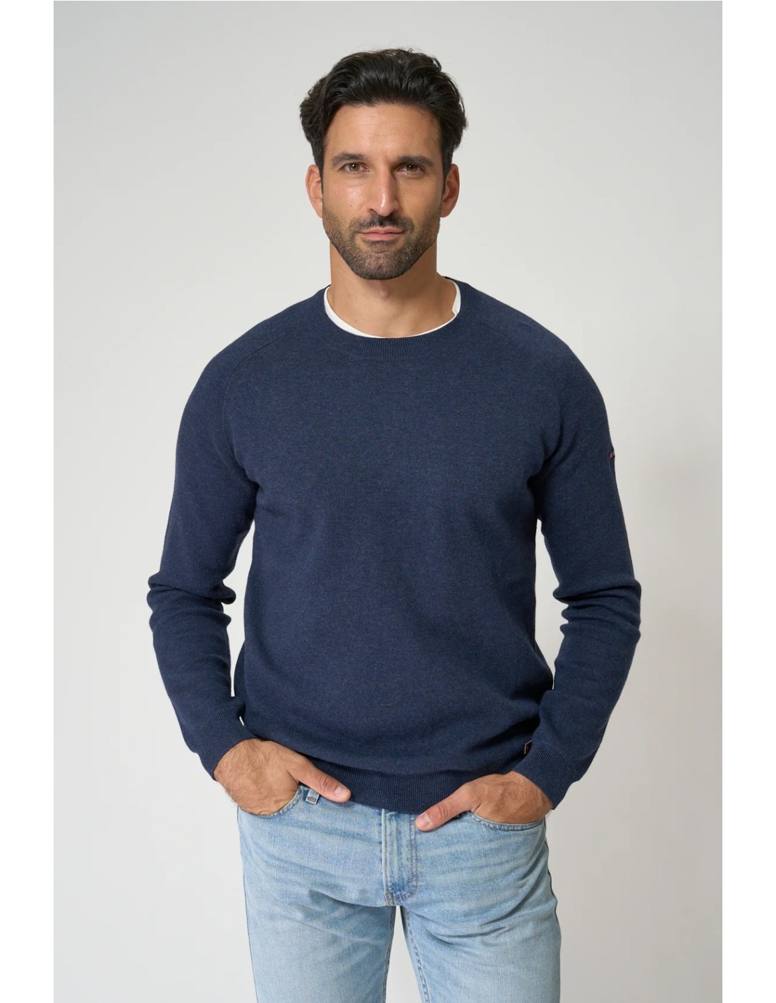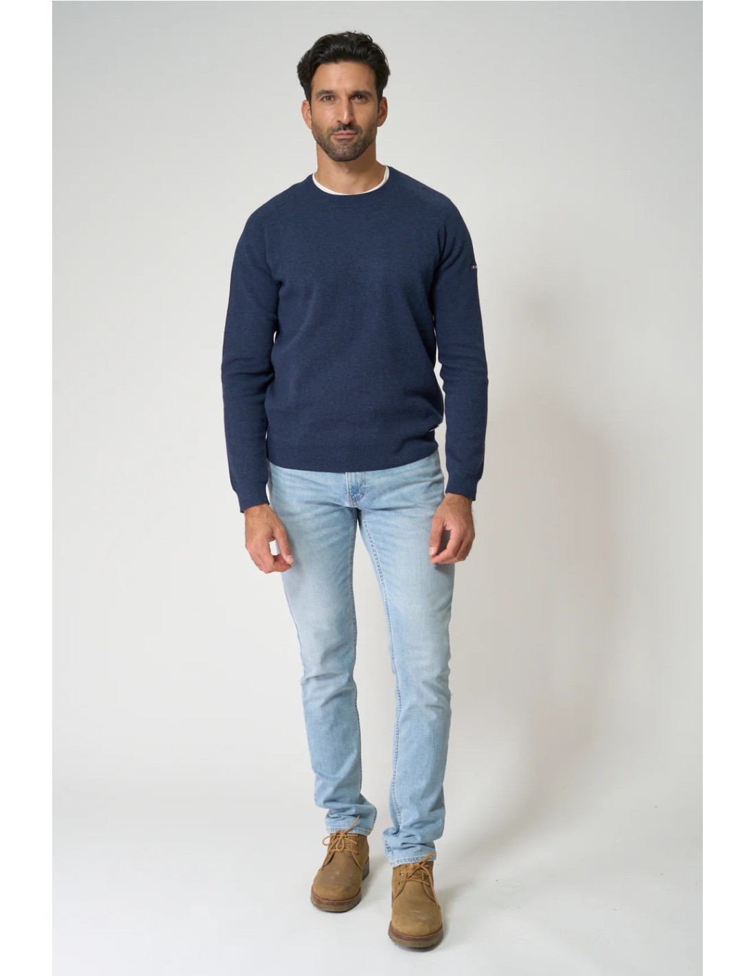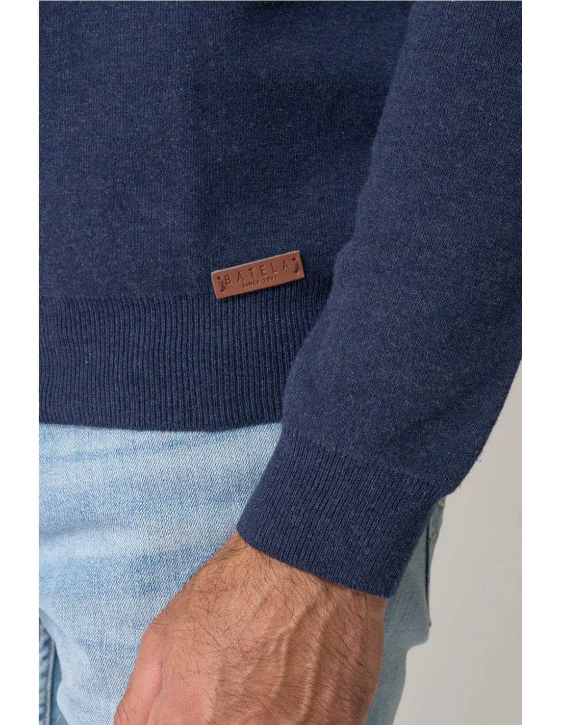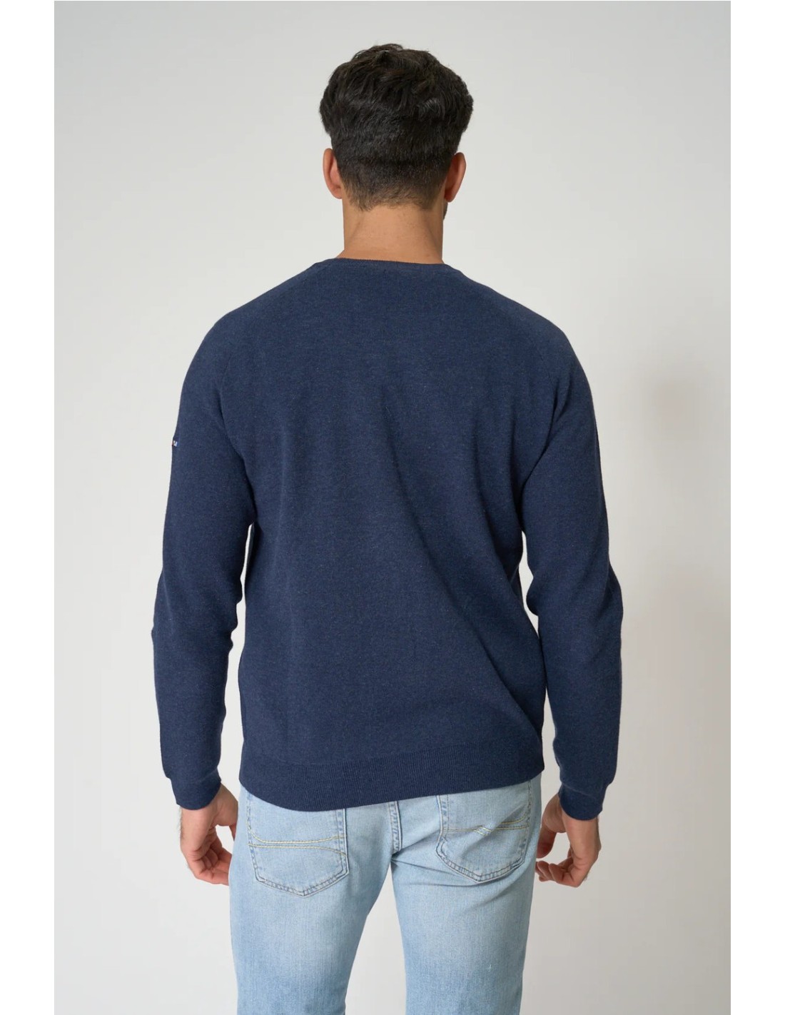 Jersey Batela bretón de lana cuello redondo y botones AZUL CREMA