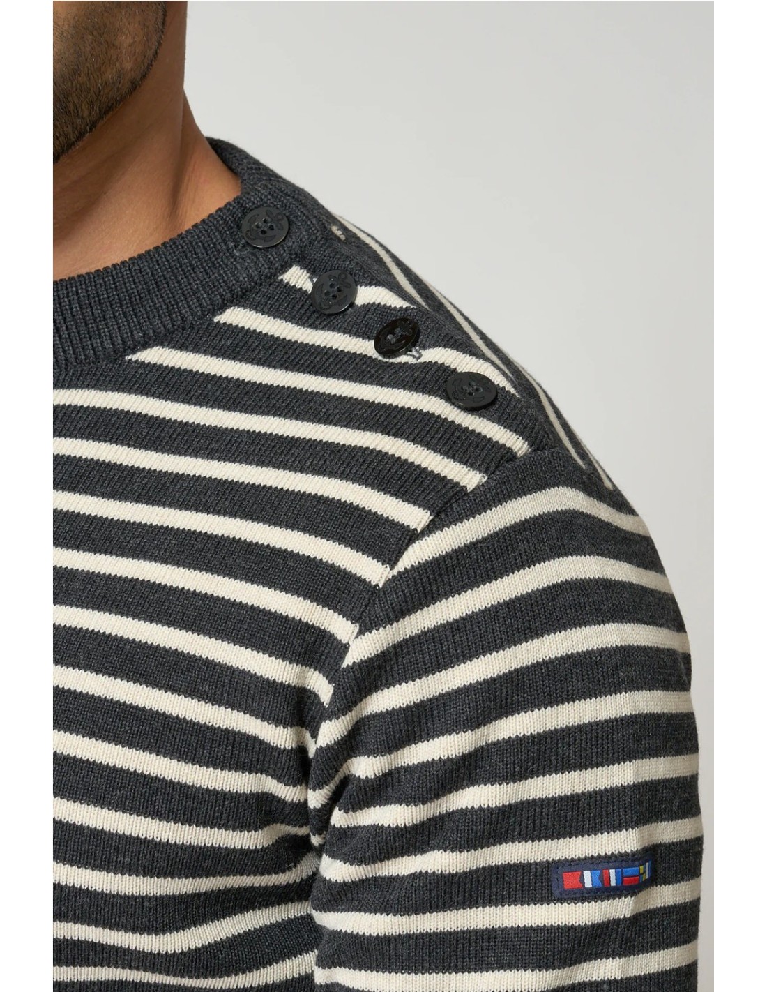 Jersey Batela bretón de lana cuello redondo y botones NEGRO GRIS