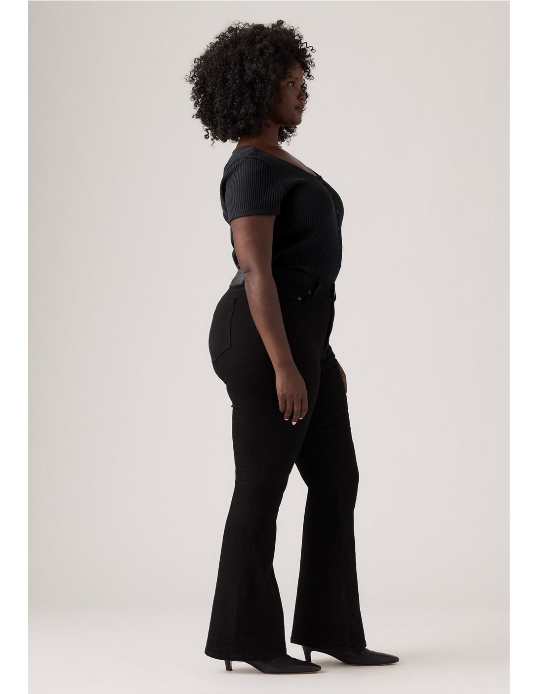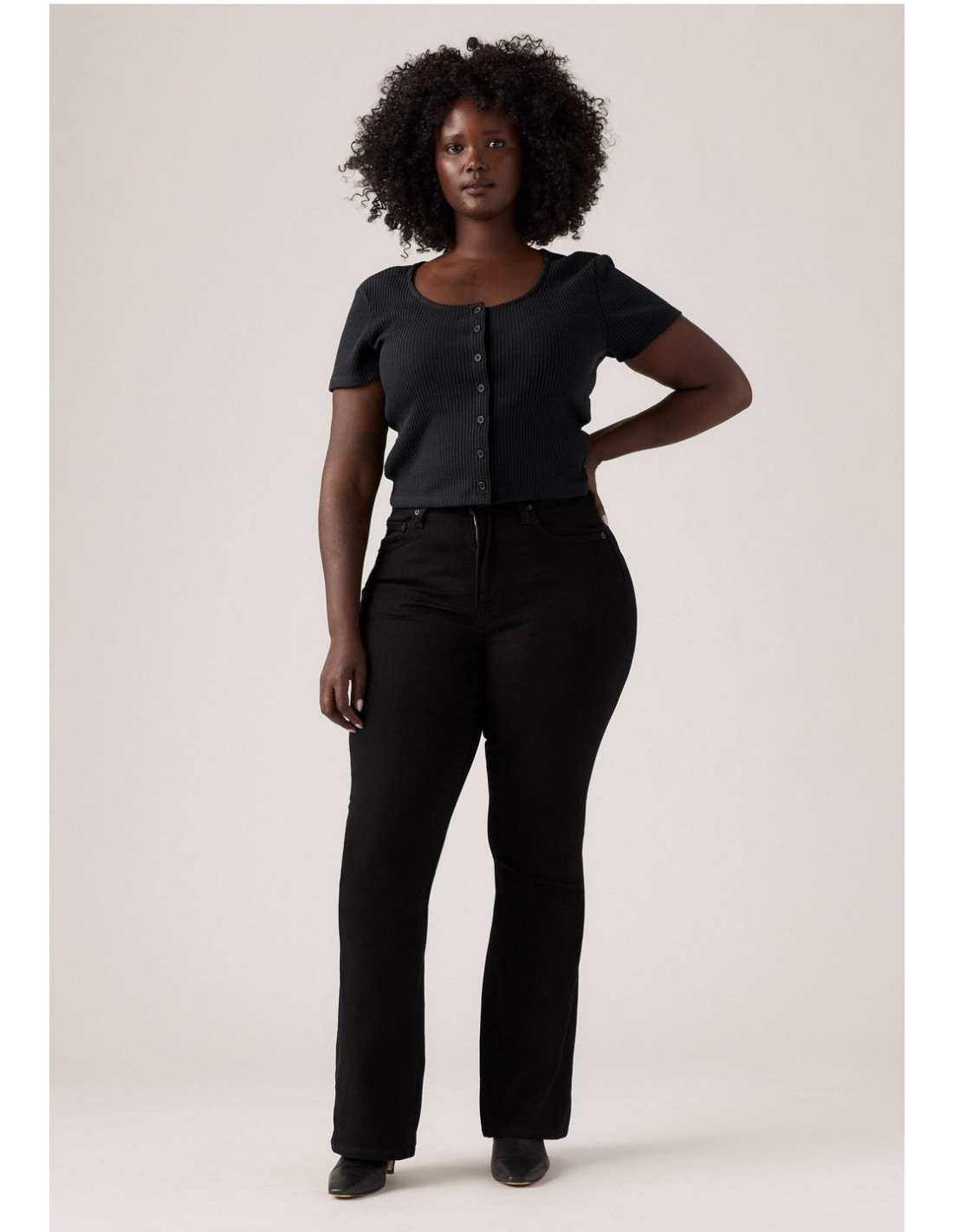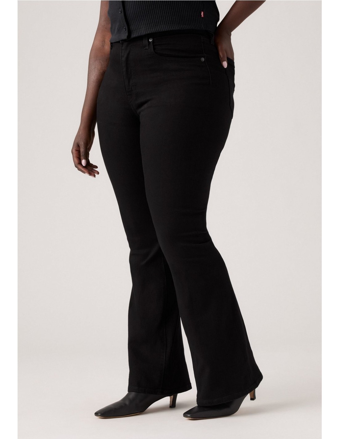 Ajustado en la cadera y los muslos Tiro alto: 26 cm Corte para bota Entrepierna: 81 cm Abertura de pierna: 53 cm Medidas basadas en la talla 27 de cintura Composición y cuidado 73 % algodón, 26 % poliéster, 1 % LYCRA® Tejido denim Elástico Cierre con cremallera Países de origen Pakistán, Egipto, Turquía