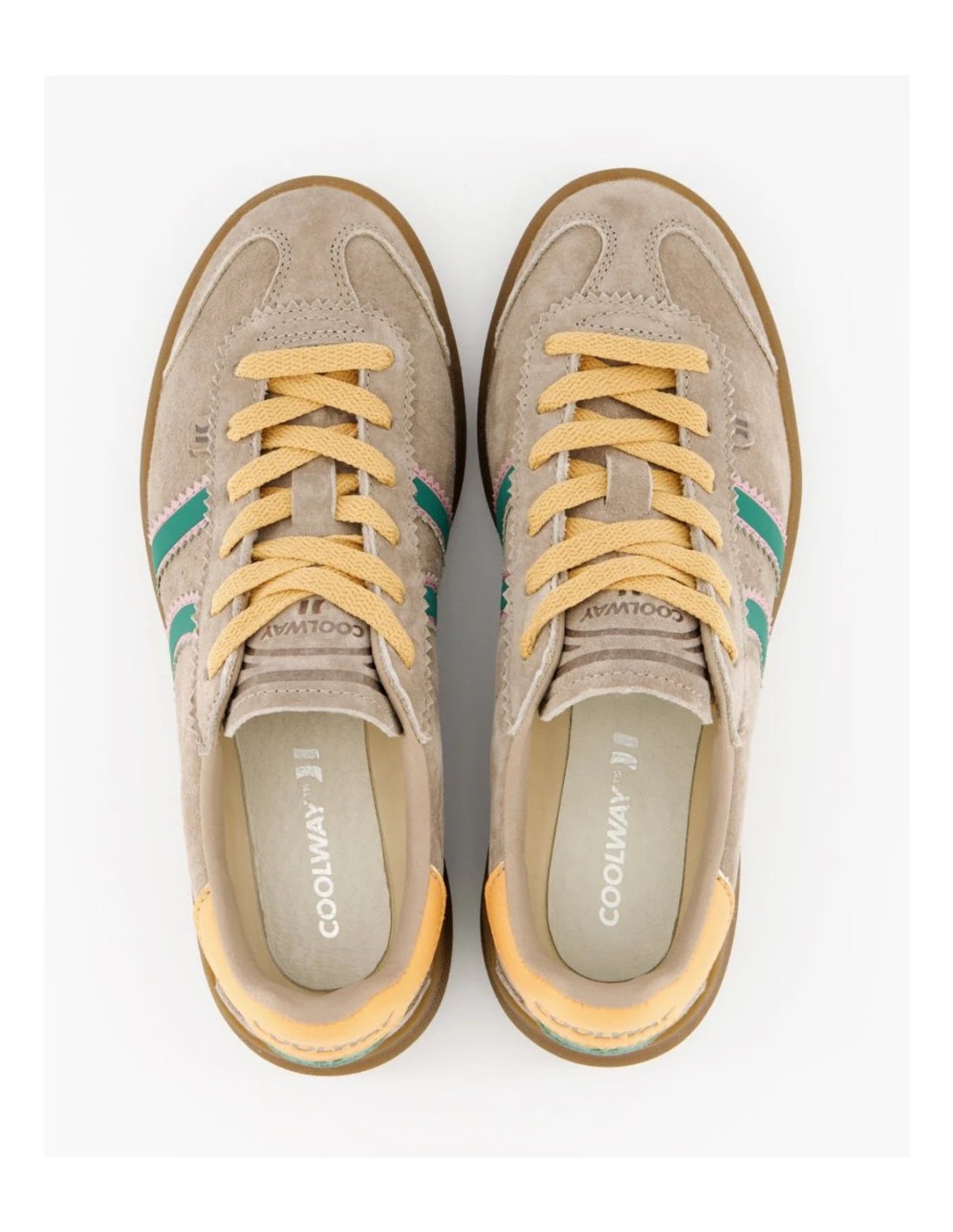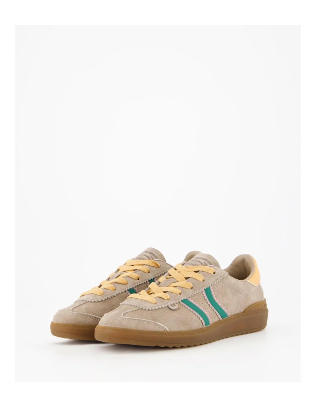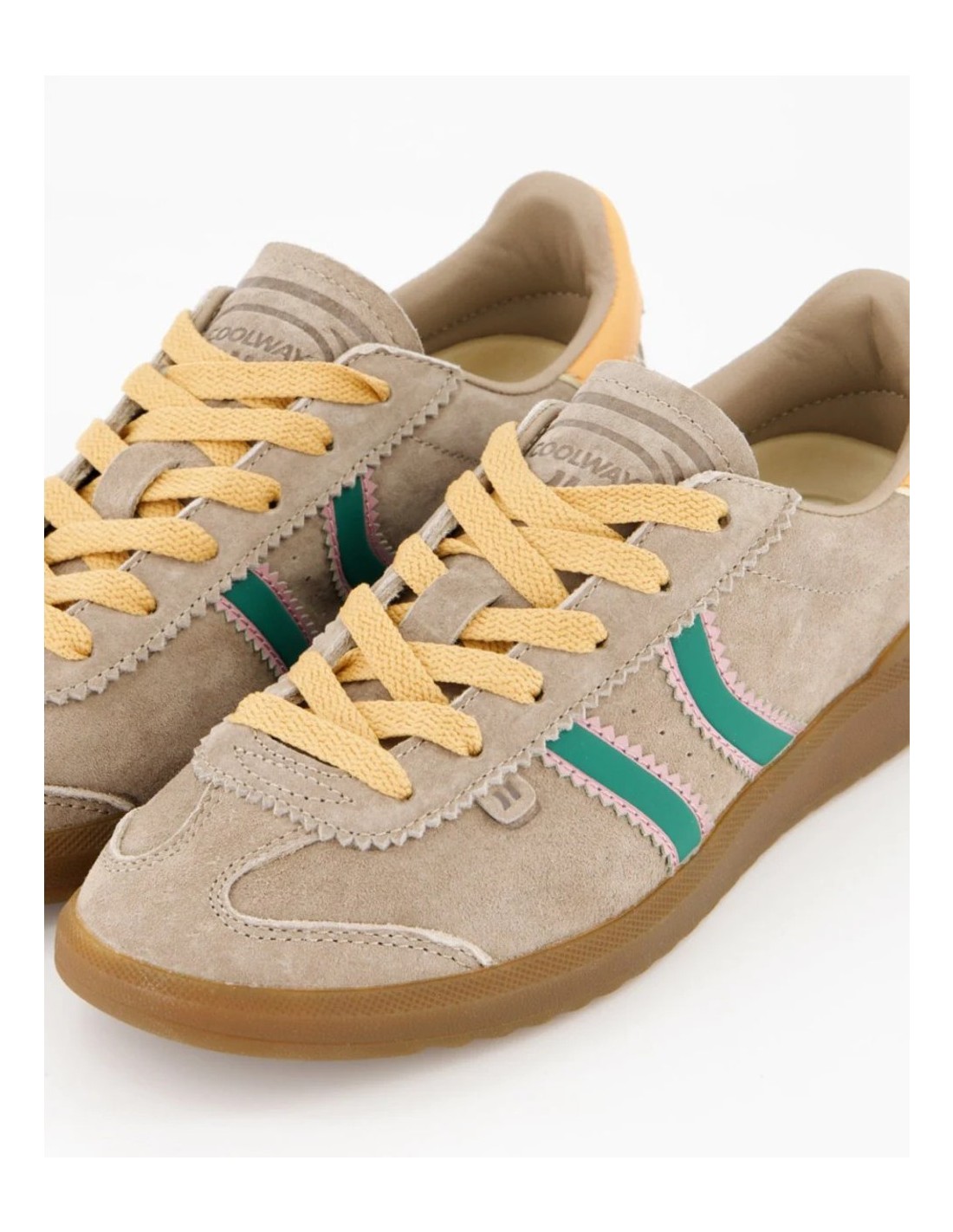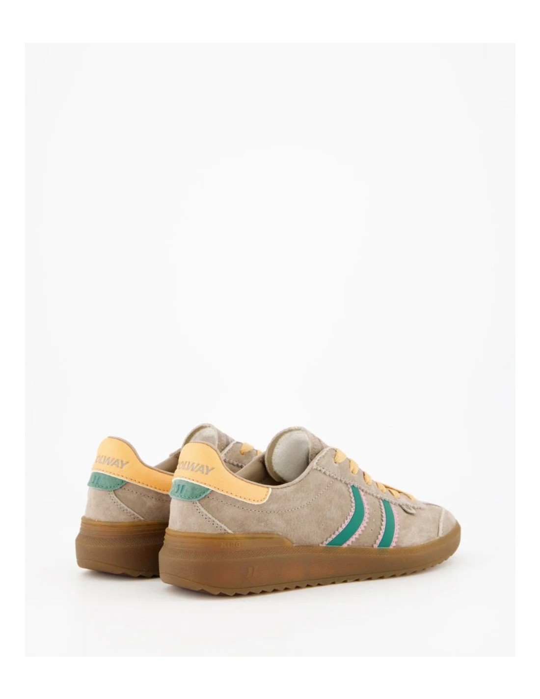Zapatilla con estilo retro, compuesta en su mayoría en serraje. El KIRO está compuesto por una lengüeta llena de detalles con el logo de la marca, forro de piel acolchado en la zona del cuello y doble cordón para que lo puedas intercambiar. En los laterales, podemos encontrar el icónico DUAL festoneado a doble color. En la zona del talón encontramos tres piezas que lo componen y un estabilizador de goma que forma parte de la suela con el nombre del modelo dando un toque único a la zapatilla.